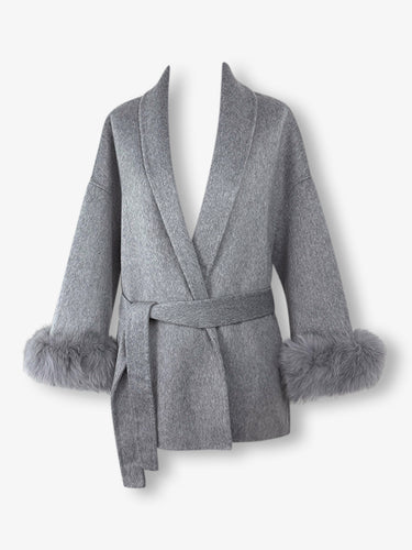 Introducing the Berlin coat, cut from luxurious wool-blend fabric. Featuring a removable fur collar, double-sided design, and tailored fit to sculpt and shape for an elegant hourglass silhouette.