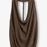 Introducing the Milan top, cut from premium polyester fabric. Featuring a halter backless camisole style with a solid color twist design, crafted to sculpt and shape for a refined hourglass silhouette.