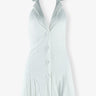 Introducing the St Barths mini dress, cut from smooth polyester spandex fabric. Featuring a Dulzura V-neck, sleeveless single-breasted design, and backless bodycon pleated blazer to sculpt and shape for an elegant hourglass silhouette.